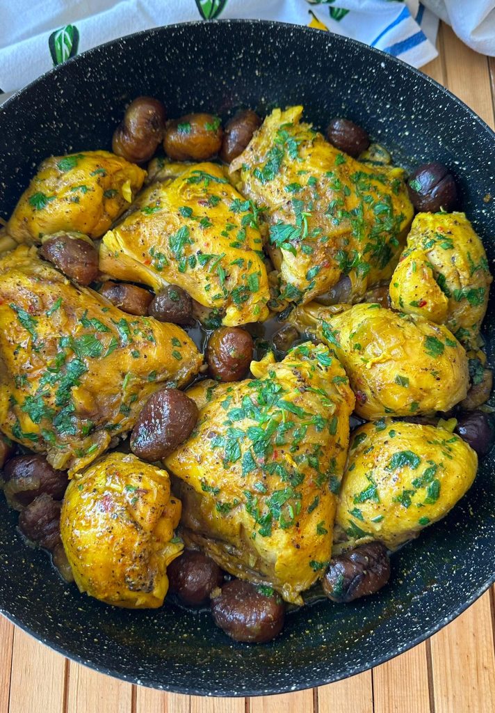 עוף עם בצל וערמונים אני אוהבת עוף בכל צורה, אפוי, מבושל או מוקפץ אבל בשנים האחרונות גיליתי שאני היחידה בבית שנהנת לאכול אותו, מאז השירות