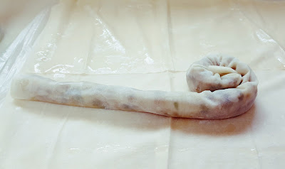 מסובבים את קצה הגליל סביב עצמו ויוצרים שבלול, מברישים את המאפה במעט שמן ומניחים בתבנית,