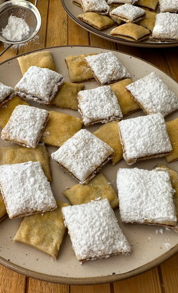 עוגיות תמרים פריכות במיוחד, מתקבלות המון אבל ממש המון עוגיות קטנות, פריכות וטעימות, מבטיחה לכם שלא תפסיקו לנשנש, העוגיות יוצאות קריספיות במיוחד בגלל הרידוד הדק של הבצק, הבצק מלווה אותי שנים (מתכון של אמא שלי), אני מכינה ממנו את רולדות התמרים שלי, טרבדוס,