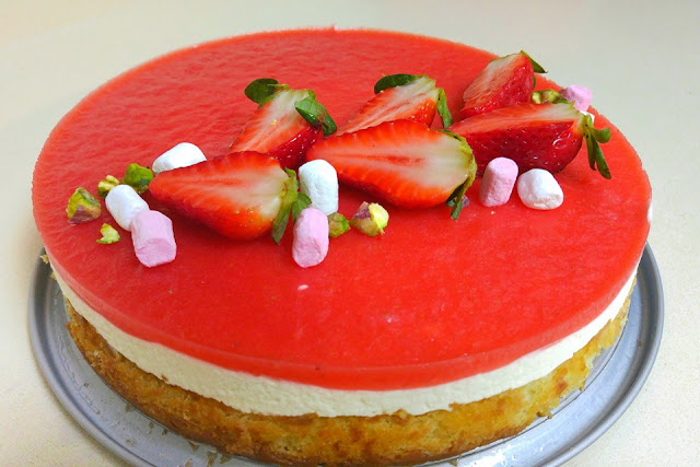 עוגת טורט טעימה, קרם וניל עדין וציפוי תותים חמוץ מתוק שילוב טעמים משגע, אל דאגה העוגה קלה מאוד להכנה ,
