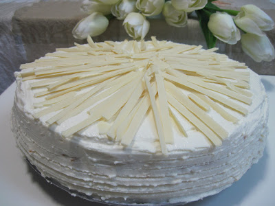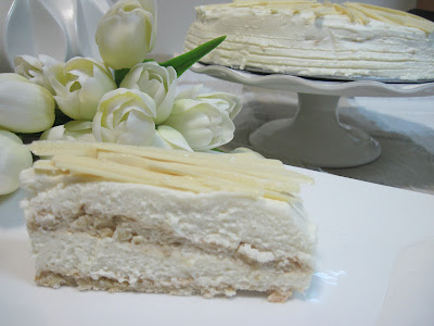 עוגת מרנג קשיו וקפה בקרם שמנת ושוקולד לבן .