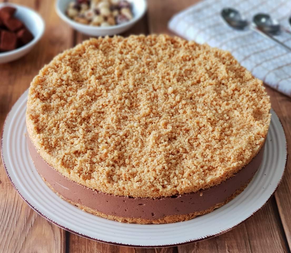 עוגת פירורים מוס שוקולד ופרלין אגוזי לוז