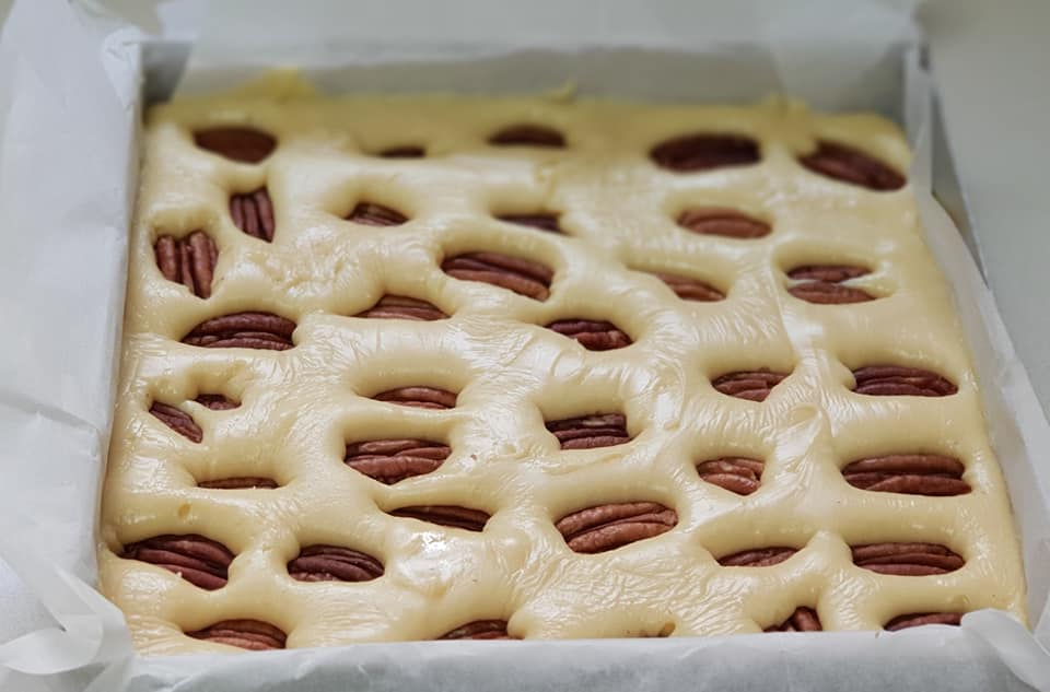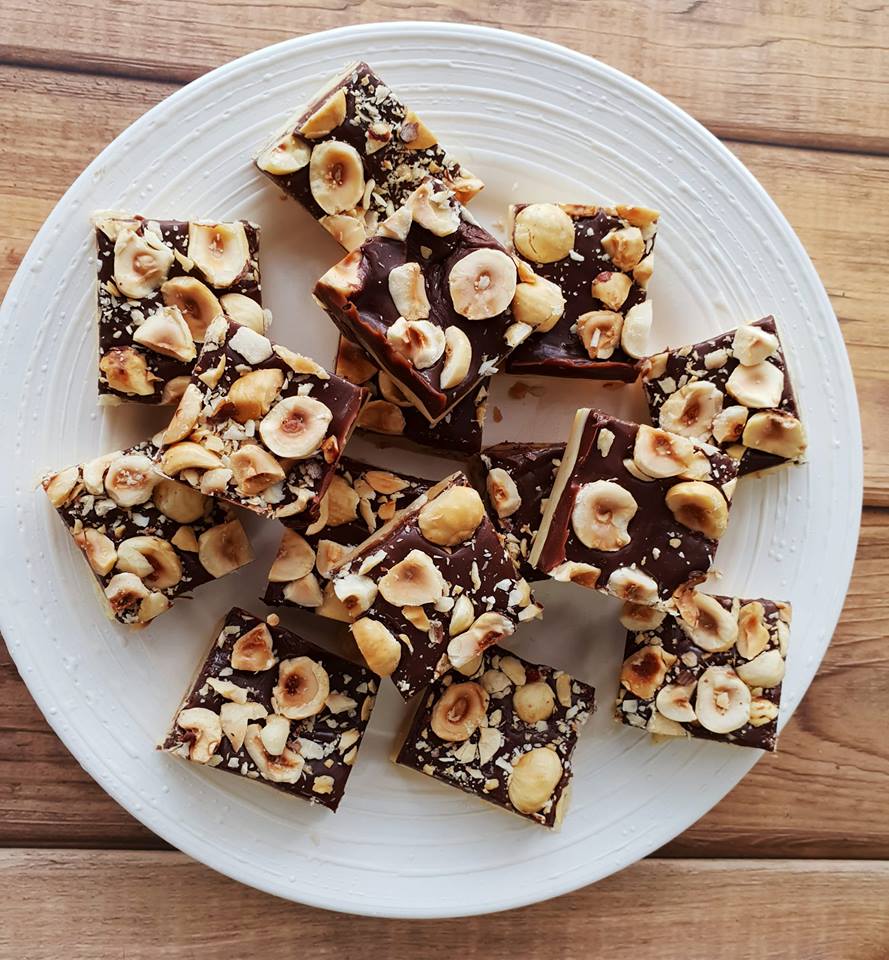 פאדג' שוקולד לבן פקאנים ואגוזי לוז
