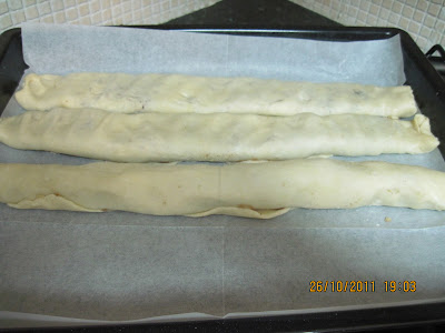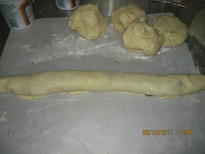 מחלקים את הבצק ל-5 יחידות שוות , מקמחים משטח עבודה (אני עובדת על נייר אפיה פחות מלכלך )מרדדים למלבן 1 יחידה של הבצק (ראה תמונה) מורחים 1/4 מקופסת ממרח התמרים (בסך הכל אני משתמשת בקופסה וחצי) בשכבה אחידה, מפזרים מעט קינמון, ואגוזים , מגלגלים לרולדה (ראה תמונה) מסדרים בתבנית (משטחים את הרולדה בתבנית עם היד ראה תמונה) מסדרים את הרולדות צמודות אחת לשנייה , חותכים את הרולדות לפני האפייה למלבנים (ראה תמונה) ומפזרים סוכר רגיל לקישוט, אופים בחום 180 מעלות כ-30 דקות , לאחר 30 דקות עוברים על החיתוך שביצענו ואופים עוד 10 דקות, עד שהעוגיות זהובות, לאחר שהעוגיות מתקררות יש להוציא אותם מהתבנית ולשמור בכלי אטום,